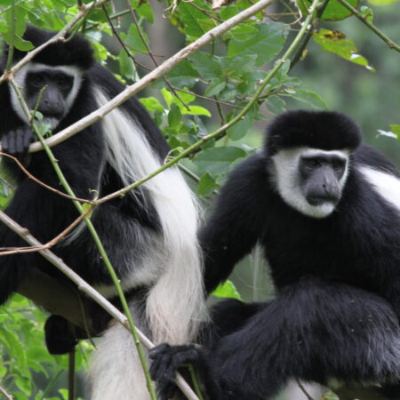Discover the best of East Africa’s primate habitats on a journey that combines Rwanda’s Mountain Gorilla trekking in Volcanoes National Park with chimpanzee tracking in Uganda’s Kibale Forest National Park, home to 13 primate species including red-tailed, blue, and black-and-white colobus monkeys.