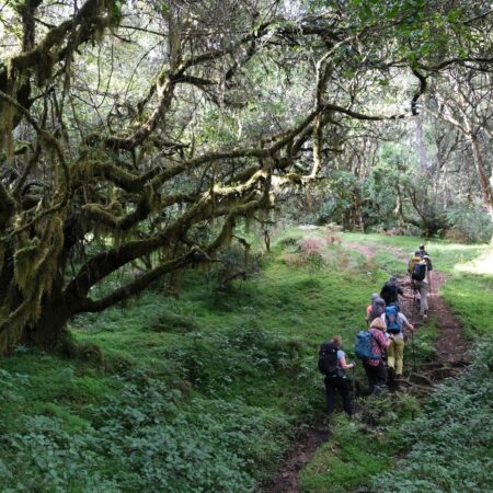 The final day of your Kilimanjaro trek begins with a descent from Miriakamba Hut (2,500 meters), gradually transitioning through the montane forests as you make your way toward Momella Gate (1,500 meters). The path is mostly downhill, making this section easier compared to previous days of ascent. As you walk, you’ll pass through a lush rainforest zone, encountering various bird species and possibly some wildlife like monkeys and antelope.