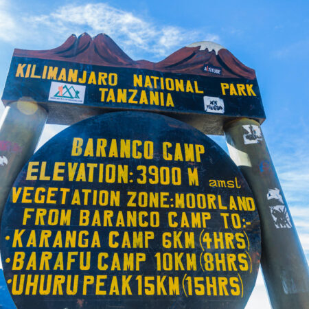 Barranco Camp: Arrive at Barranco Camp (3,900 meters), nestled at the base of the Barranco Wall, offering a peaceful spot to rest and acclimatize.