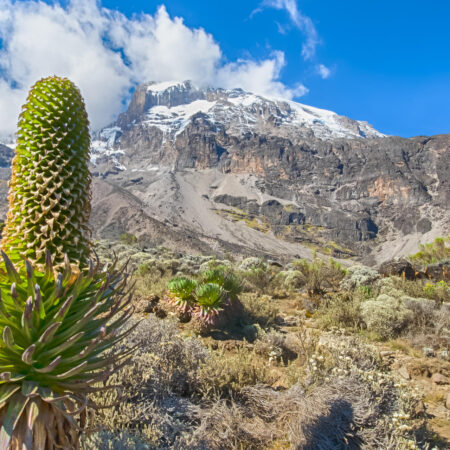 Views of Kibo Peak: Enjoy stunning views of Kibo Peak as you trek towards the base of Mount Kilimanjaro’s summit.