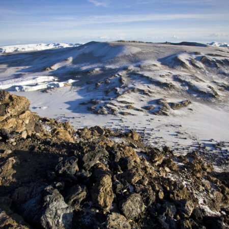 The trail begins with a gradual climb, crossing rocky terrain and winding through volcanic rock formations. As you gain elevation, you’ll be treated to spectacular views of the glaciers and the summit of Kilimanjaro. The surrounding landscape is sparse, with the occasional hardy plant, and the terrain becomes more barren as you approach Third Cave Camp.