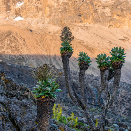 The route offers breathtaking views of the Kibo Peak, as well as the surrounding volcanic landscape. The trail winds through open meadows, where you can enjoy the sight of the unique, alien-like Dendrosenecio kilimanjari plants, which are iconic to Kilimanjaro and thrive in these higher altitudes.