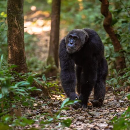Observe one of Africa’s largest chimpanzee populations guided by expert trackers