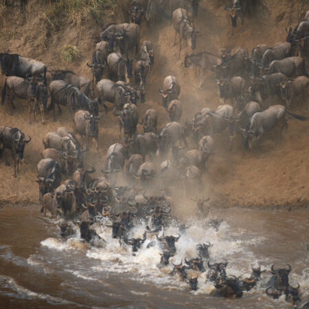 Depart camp at dawn after an early breakfast and travel north through the Serengeti’s remote wilderness toward the Mara River in the Kogatende region, an area renowned for its dramatic Great Migration river crossings between July and October.